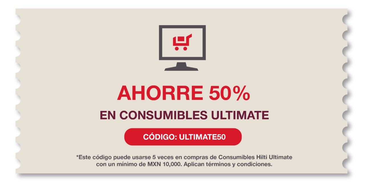 *Válido en compras de Consumibles ULTIMATE de Hilti con un mínimo de 10,000 MXN en su pedido