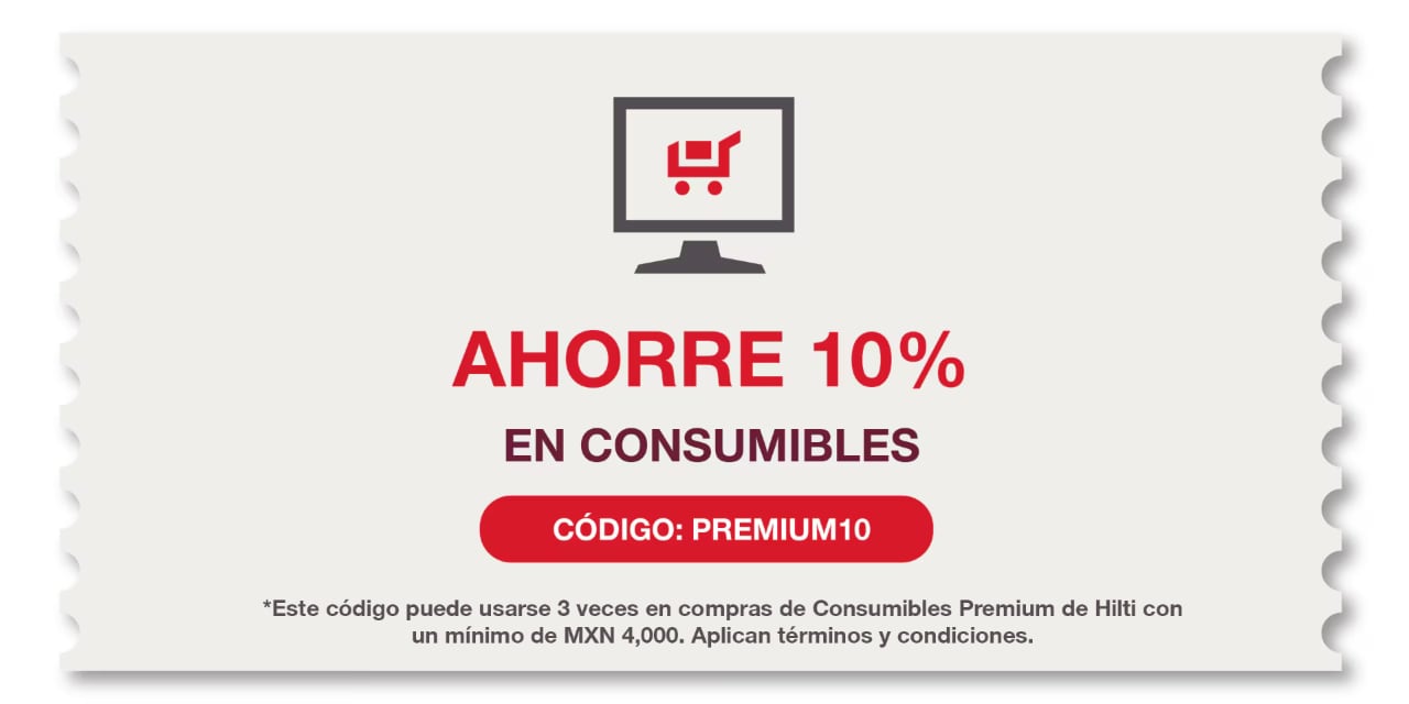 *Válido en compras de Consumibles PREMIUM de Hilti con un mínimo de 4,000 MXN en su pedido